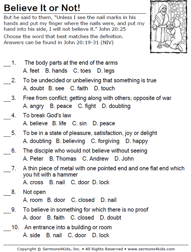 Doubting Thomas Believes - UPPER Elementary Lesson