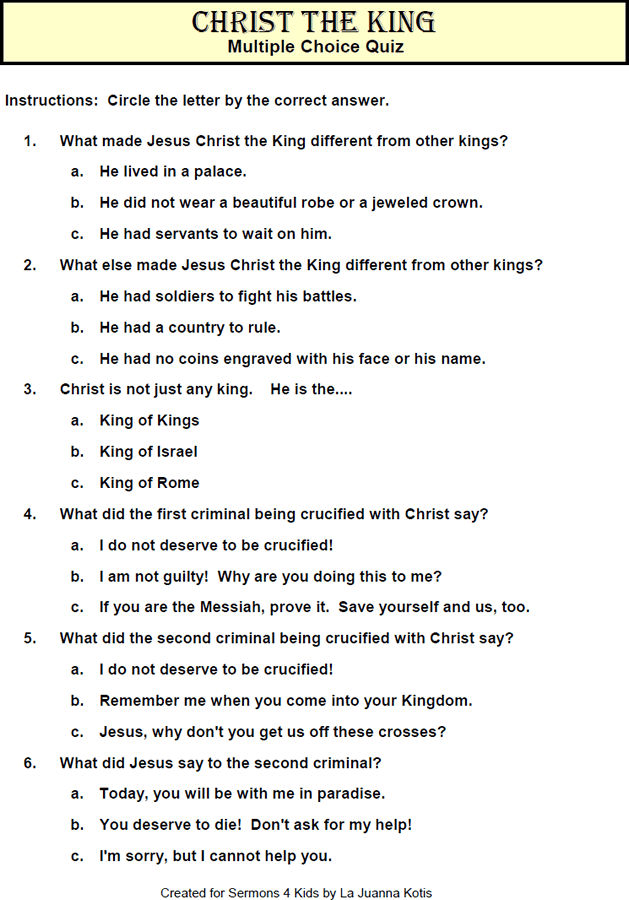 Christ the King - Lower Elementary Lesson
